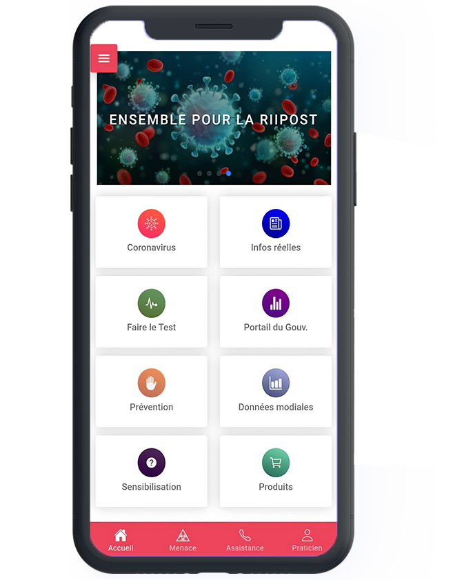 Apporte à l’utilisateur de façon spontanée, des informations relatives au Covid19. Une fois installée sur le téléphone, grâce à son système d’alerte, RIIPOST envoie des notifications push directement aux utilisateurs à la différence des sites web où l’utilisateur doit naviguer pour aller à la recherche des informations.