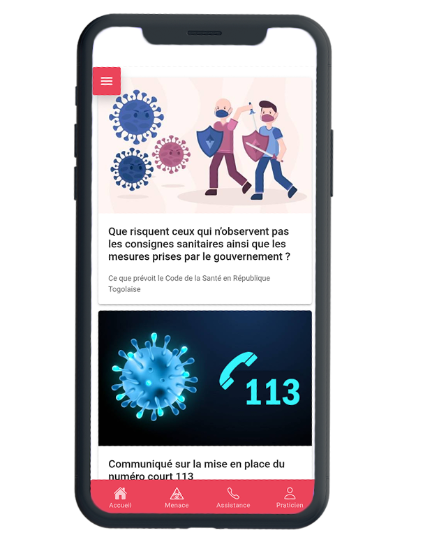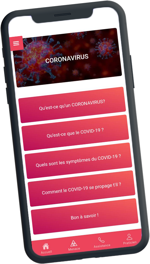 Elle permet à l’utilisateur de savoir ce qu’est le Covid19, ses symptômes et mode de transmission bref, de tout savoir sur le Covid19.